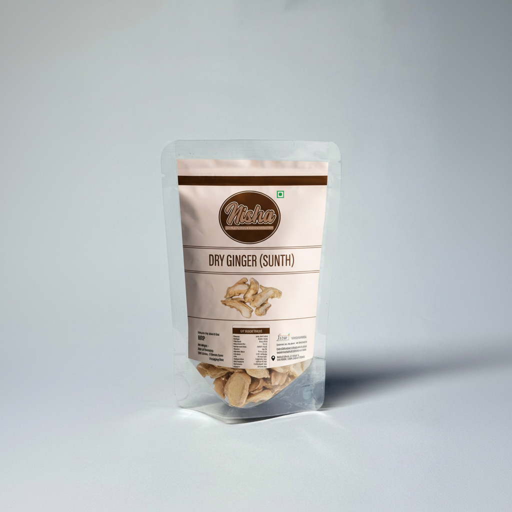 Dry Ginger, commonly known as Sunth, is a time-honoured spice used across Indian kitchens and Ayurvedic preparations. Nisha Dry Fruit Spices’ Dry Ginger (Sunth) is carefully sourced, dried, and hygienically packed to preserve its strong aroma, pungency, and natural goodness.