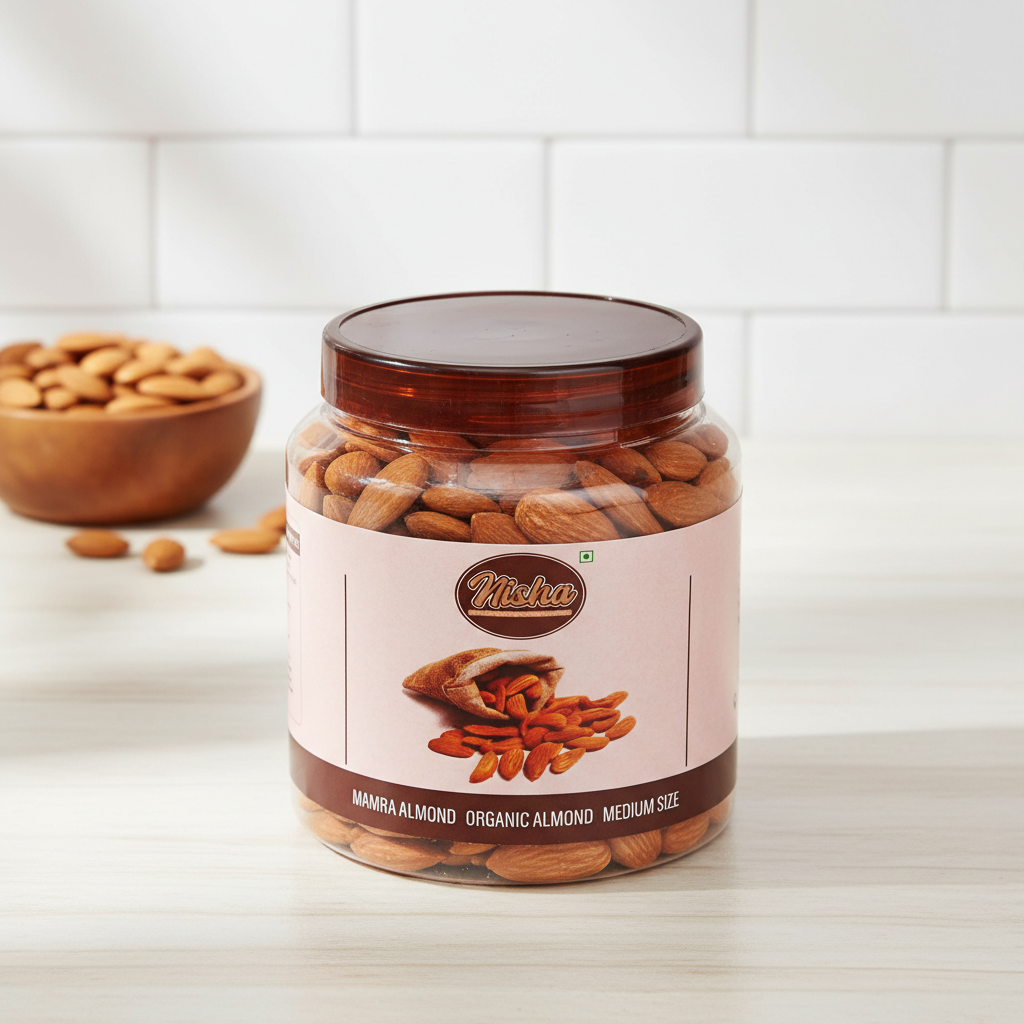 The perfect balance of tradition and everyday ease. These Mamra Almonds bring the cherished, round shape and deep, rich flavor of organic Mamras right into your daily routine. Loved for their natural purity and wholesome goodness, they’re your go-to for everything from morning rituals to family cooking—making premium wellness feel simple and sustainable.