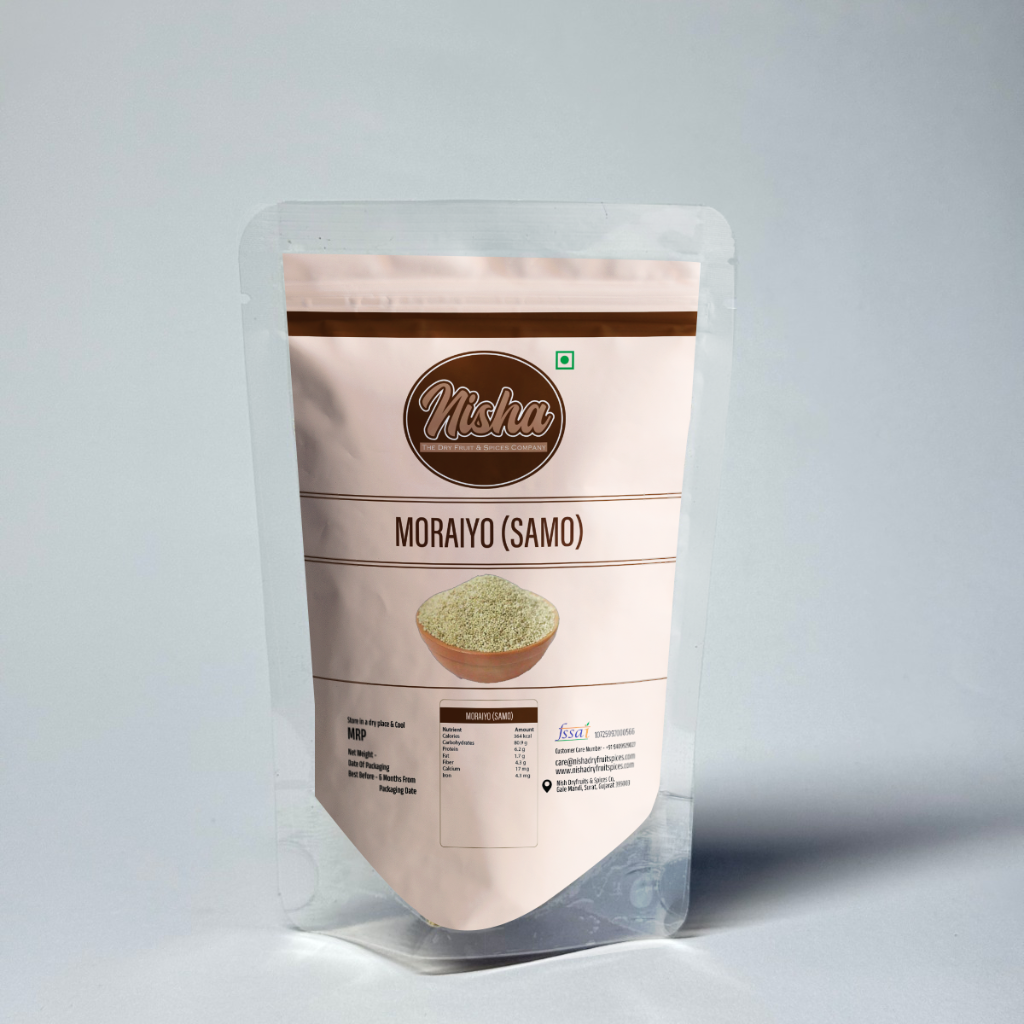 Moraiya, also known as Samo or barnyard millet, is a traditional grain widely consumed during fasting periods and light-meal preparations. Nisha Dry Fruit Spices’ Moraiya is carefully cleaned and hygienically packed to ensure purity, freshness, and consistent quality.
