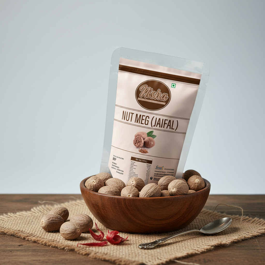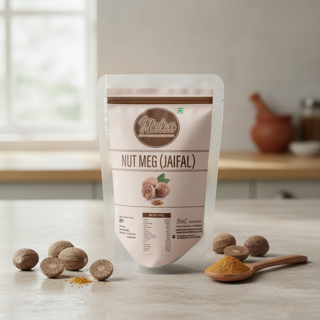 Nutmeg, known as Jaifal, is a classic whole spice treasured for its warm aroma and subtly sweet flavour. Used sparingly, it adds depth and richness to both sweet and savoury dishes. Nisha Dry Fruit Spices’ Nutmeg is carefully sourced and hygienically packed to ensure superior quality and freshness.